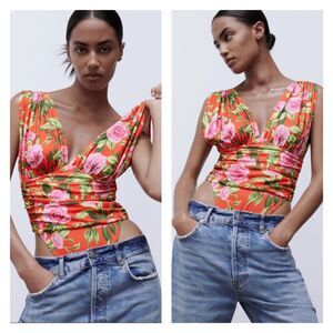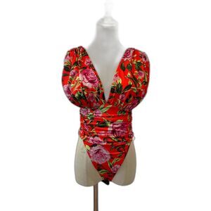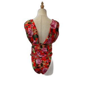 ZARA Red Tropical Bodysuit Plunge Neckline NEW Small Blogger Favorite