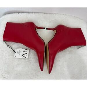 ZARA Red Zip Front Pointed Toe Stiletto Ankle Boots Size 37 NWT