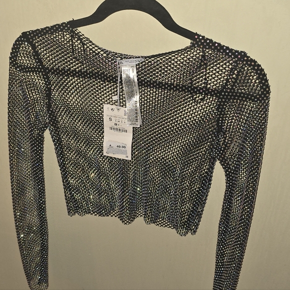 ZARA Rhinestone Cropped Top