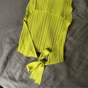 ZARA ribbed open back muscle tank. Features a low tie back. High stretch fabric. In good used condition - one minor stain on the front hem (pictured).
