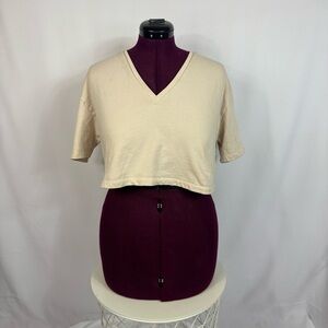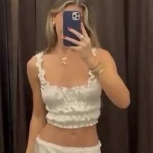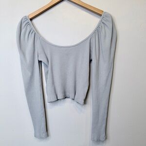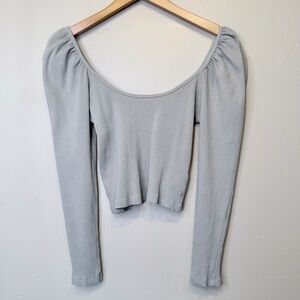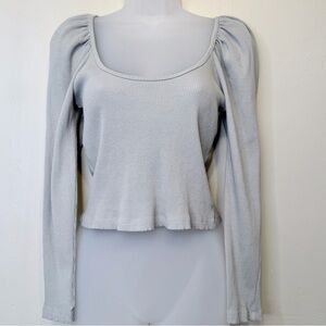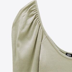 Zara Ribbed Cropped Puff Shoulder Long Sleeve Scoop Neckline Feminine Coquette Baddy Euro Summer Stretch Shirt Crop Top