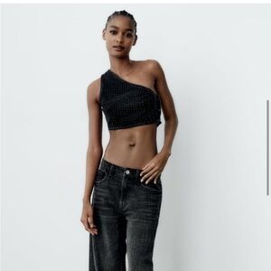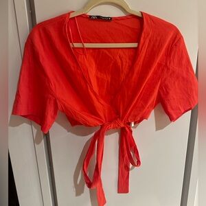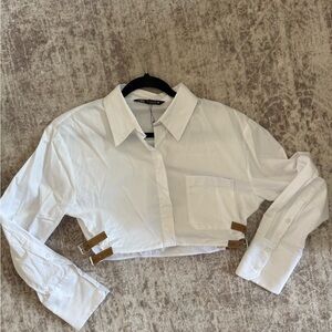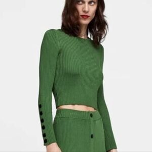 ZARA | Ribbed Puff Long Sleeve Shirt Crop Top