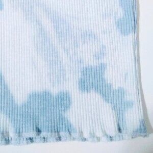 ZARA Ribbed Tie Dye Bodycon Mini Dress. Nebula tie dye design, asymmetrical neck, lettuce hem, ribbed fabric.