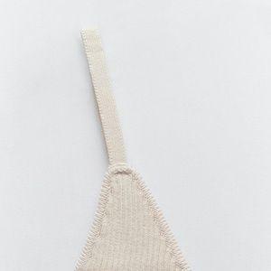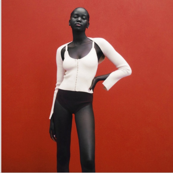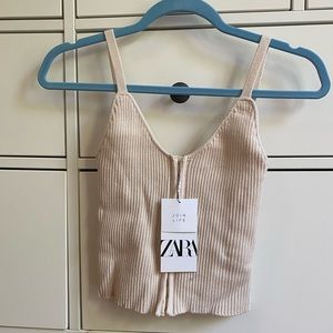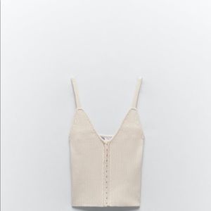 Cream ribbed crop top with core set style hooks in the front. Very romantic! Size small