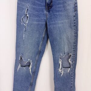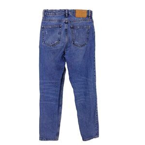 ZARA Ripped Distressed Mom Straight Crop High Rise Jeans 2 Mid Blue Wash EUC B11
