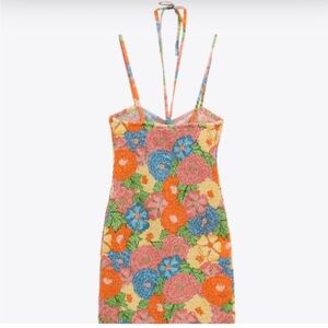 Vibrant floral halter dress with a multicolor design. Perfect for a bold and stylish look.