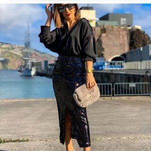 ZARA Ruched Sequin Skirt