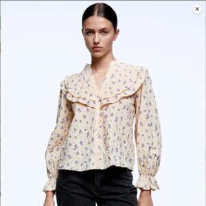 ZARA Ruffle Blouse Floral Print SZ M New With Tag