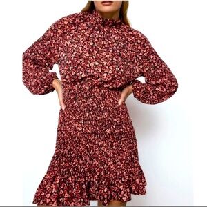 ZARA ~ Rust Floral Mini Dress w/Smocked Skirt & Peek-a-Boo Back ~ Size Large