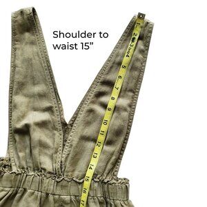 ZARA Rustic Pinafore Dress Overall Jumper Linen Blend Light Olive Green Size S