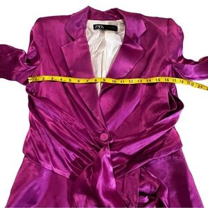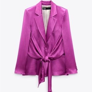 ZARA SATIN BLAZER WITH BUILT IN TIE SASH SIZE S PINK/ FUCHSIA FEMININE ROMANTIC