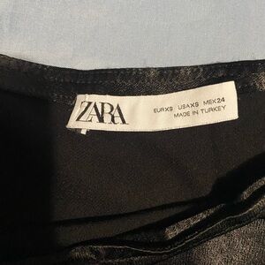 This elegant black midi skirt from Zara features a classic A-line silhouette, perfect for a polished work look. Its high-waisted design accentuates the waist, while the smooth fabric drapes beautifully to mid-calf length. Ideal for versatile styling, this skirt is a timeless addition to any wardrobe.