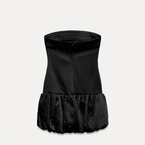 ZARA SATIN EFFECT RHINESTONE BALLOON DRESS