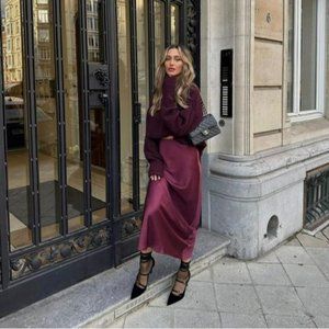 Midi skirt with a mid waist made of 100% viscose. A-line silhouette. Hidden in-seam zip closure. Burgundy.