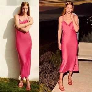 ZARA SATIN LINGERIE STYLE DRESS PINK XS