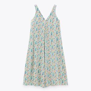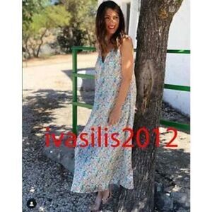 ZARA SATIN V-NECK STRAPPY FLORAL PRINTED FLOWY DRESS