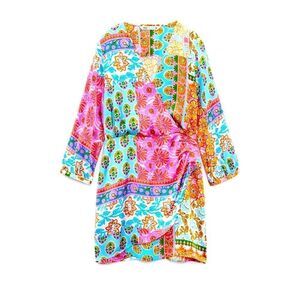 ZARA SATIN PATCHWORK PRINT DRESS