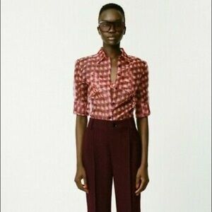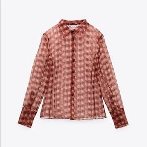 ZARA SEMI-SHEER PRINTED ORGANZA BLOUSE