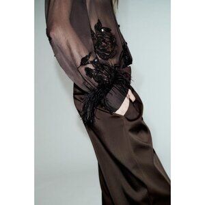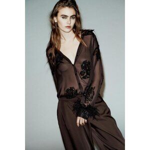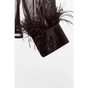 ZARA SEMI-SHEER SEQUIN FEATHER BLOUSE