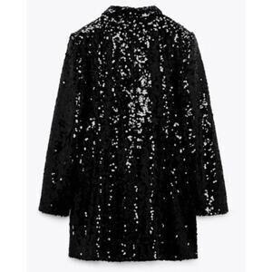 Blazer with lapel collar and long sleeves with shoulder pads. Front double breasted snap button closure.