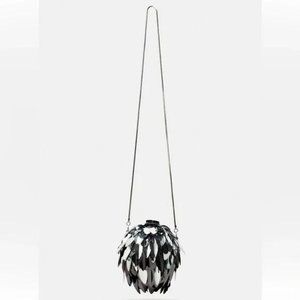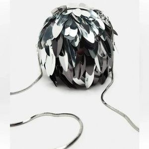 Crossbody bag with sequins. Chain crossbody strap. Metal closure.
