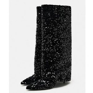 ZARA SEQUIN GAITER BOOTS