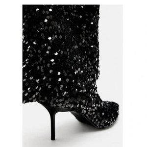 Velvet knee high boots with sequins. Gaiter detail. Pointed toe.