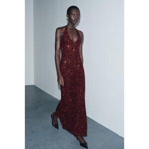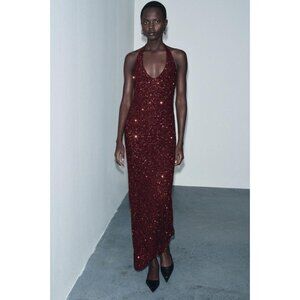 ZARA SEQUIN V-NECK DRESS