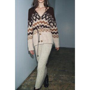 ZARA SEQUINED JACQUARD KNIT CARDIGAN WITH BELT
