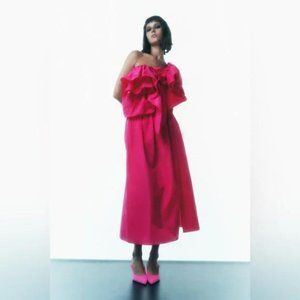 ZARA SET FUCHSIA VOLUMINOUS RUFFLE TOP + SKIRT