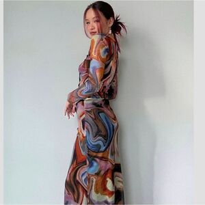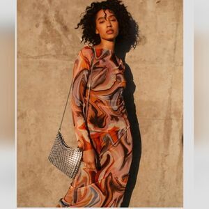 ZARA SET Printed tulle โSet Top And Skirt Organge Beige Brown Combiation