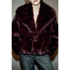ZARA SHORT FAUX FUR COAT WITH FIREMAN CLASPS