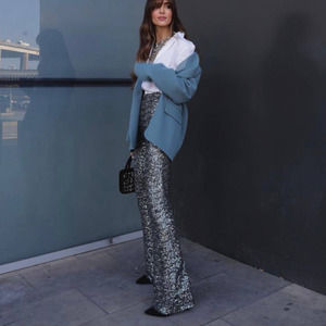 ZARA SILVER SEQUIN LEGGINGS / FLARE PANTS