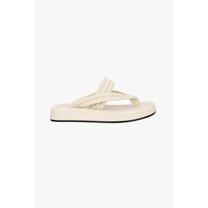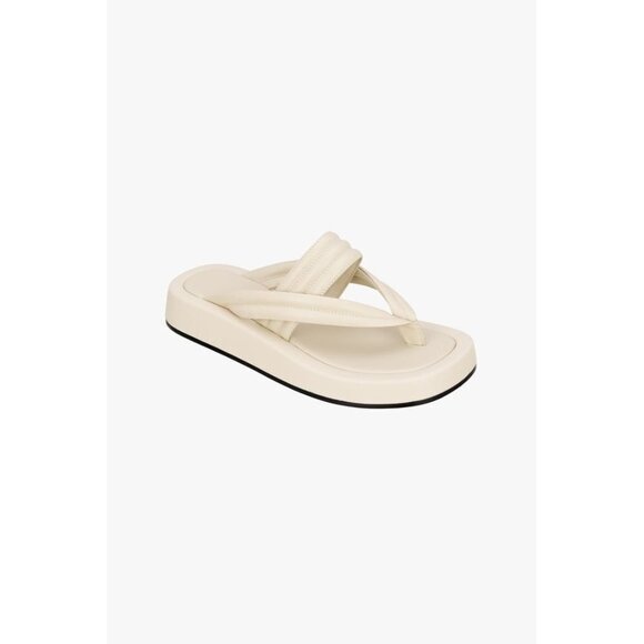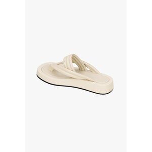 Flat leather sandals. Quilted front straps with toe post and wide strap at instep. Tonal topstitching.