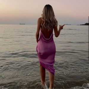 ZARA - SOLD OUT NWT SATIN LINGERIE STYLE DRESS PINK / MAUVE SIZE LARGE
