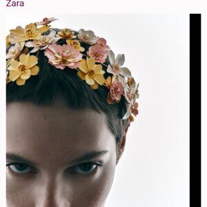 ZARA SPARKLY HEADBAND Tiara 2023 3D Mettalic flowers rhinestones rare sold out