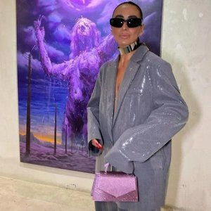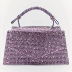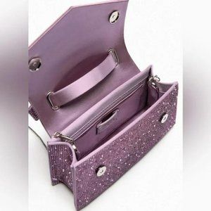 Mini city bag with rhinestones. Handle and crossbody strap. Lined interior.