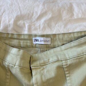 ZARA SPLIT HEM HIGH WAISTED SKINNY JEANS GREEN