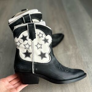 ZARA STAR LEATHER COWBOY ANKLE BOOTS