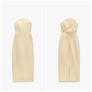 ZARA STRAPLESS SATIN EFFECT MIDI DRESS