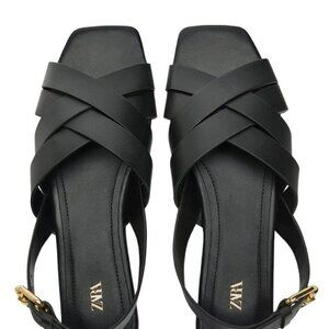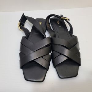 ZARA STRAPPY LEATHER SANDALS BLACK SIZE 8 | 2519/110/800