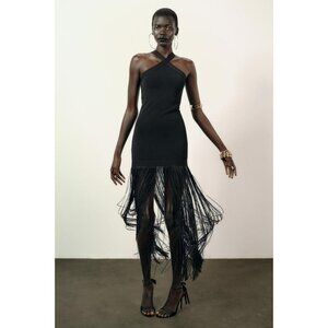 ZARA STRETCH LONG DRESS WITH FRINGING