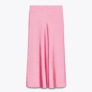 Zara satin pink and white striped midi skirt. Elastic waistband.