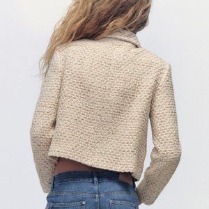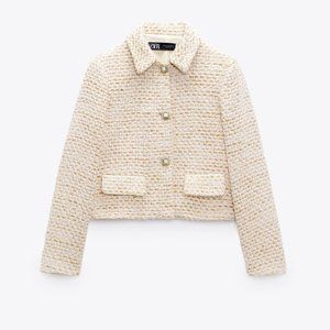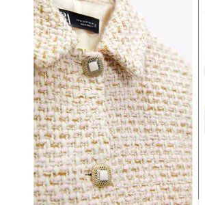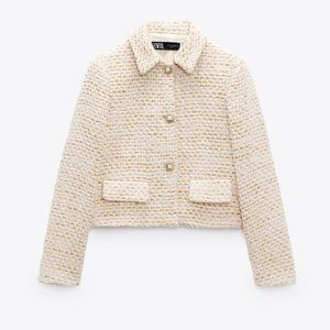 ZARA STRUCTURED TEXTURED TWEED SHORT JACKET LIMITED EDITION S,M PINK WHITE
