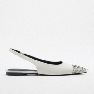 ZARA STUDDED FLAT LEATHER SLINGBACKS