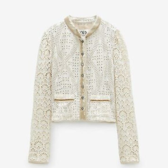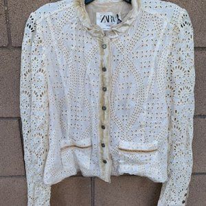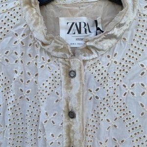 ZARA STUDIO LIMITED EDITION ECRU CUTWORK VELVET CONTRAST JACKET - Size Large
