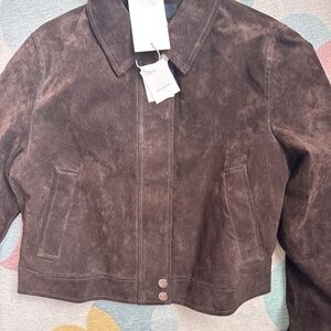 ZARA SUEDE LEATHER BOMBER JACKET WITH POCKETS
