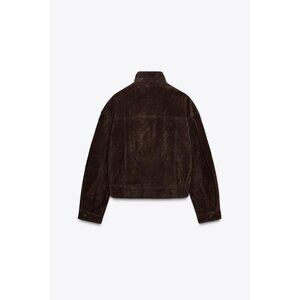 ZARA SUEDE LEATHER BOMBER JACKET WITH POCKETS