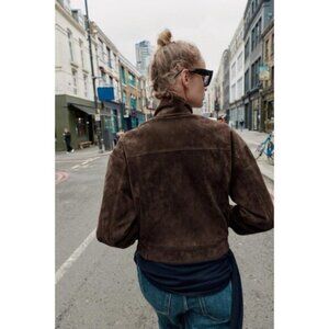 ZARA SUEDE LEATHER BOMBER JACKET WITH POCKETS
