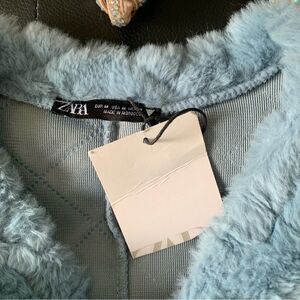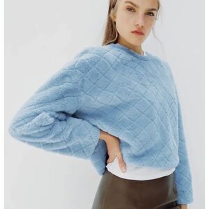 ZARA BLUE FUZZY QUILTED SWEATER M CROP